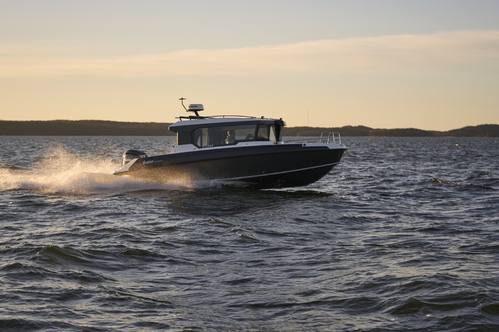 Ajettavuus on Magnumin tapaan huippuluokkaa. Muotokieleltään vene on saanut inspiraationsa isoveljestä Buster Phanton Cabinista.