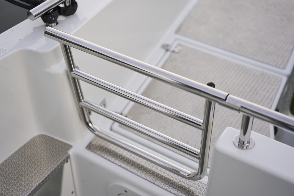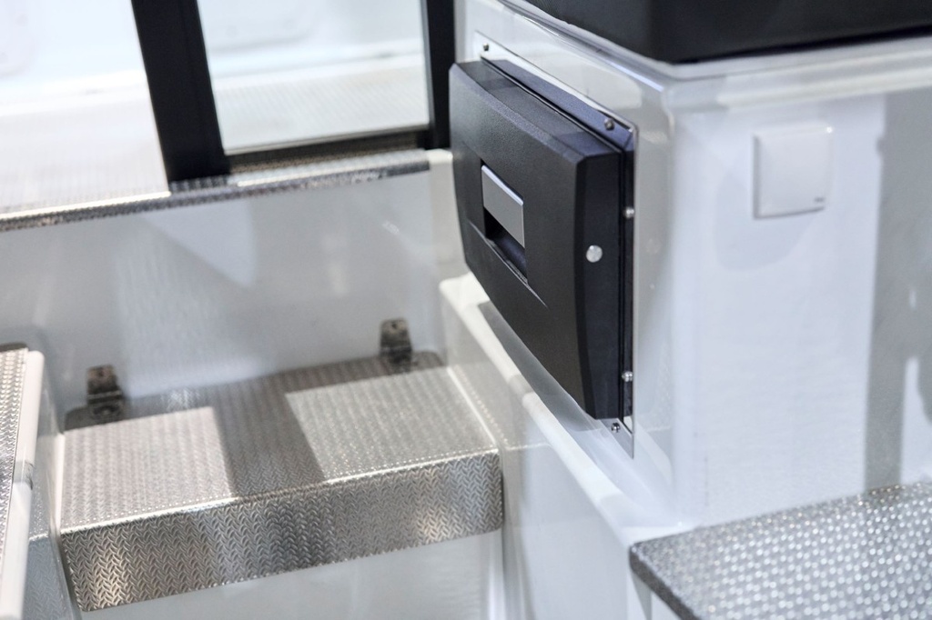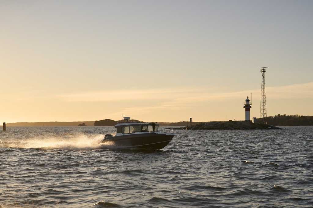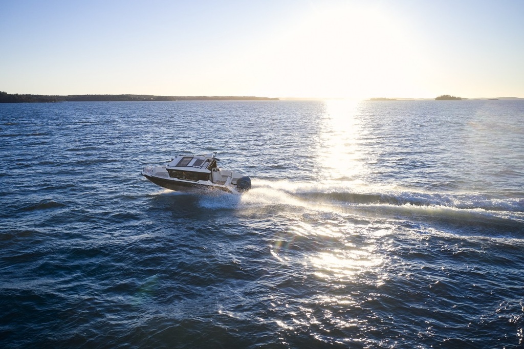 Suuret ikkunat ja iso kattoluukku tuovat hyttiin avoveneen avaruutta. Ergonominen ohjauspaneeli ja fiksu tilankäyttö takaavat mukavia matkoja niin kuljettajalle kuin muille matkustajille. Säilytystilaa on paljon ja liikkuminen helppoa sekä hytissä että kannella. Vene sopii mainiosti yhteysveneeksi ja retkiveneeksi, ja sen voi lisävarusteilla muunnella juuri omiin tarpeisiin sopivaksi.