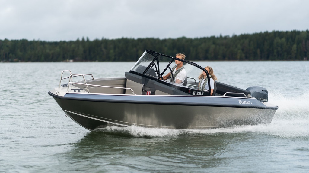Päivitetyn ilmeen saanut Buster X on monipuolinen yleisvene, joka monipuolisuus tekee siitä yhden tuoteperheemme kestosuosikeista. Tuulilasi ja väliovi tarjoavat hyvän suojan matkustamoon, ja sen musta karmi antaa veneelle ryhdikkään ilmeen. Ruostumatonta terästä olevat kaiteet ja alumiinilattia ovat sekä tyylikkäät että käytännölliset. Lisävarusteilla rakennat tästä Busterista täydellisen veneen juuri sinun käyttötarkoitukseesi.