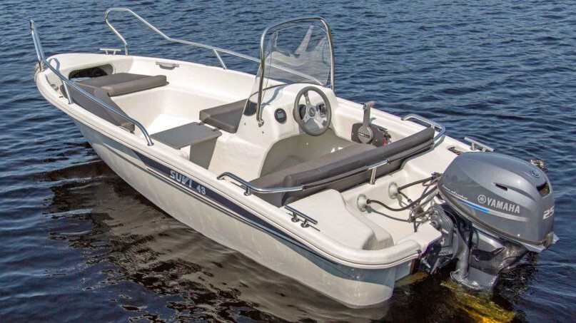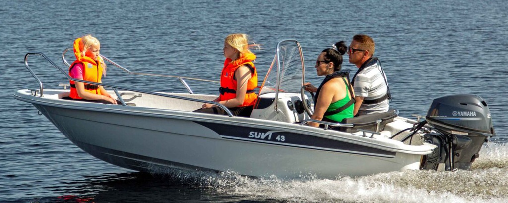Suvi 43 on mökki- ja kalastuskäyttöön soveltuva ohjauspulpettivene. Mallissa on kaksi lukittavaa säilytystilaa ja pieni keulakansi, jonka alle jää köysiboxi. Suvi 43 on kokoisekseen vakaa ja todella mukava ajettava. Moottoriteho 20-25 hv. Soutumahdollisuus. Lyhyt- tai pitkärikiselle moottorille. Suvi 43 ei ole sadevesityhjenevä. Korvaa poisjäävän Suvi 4230-mallin. Kölirauta vakiovarusteena!
